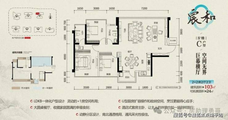 👉▌建面约103㎡巨幕横厅 无界四房 (可拓展面积约24㎡)