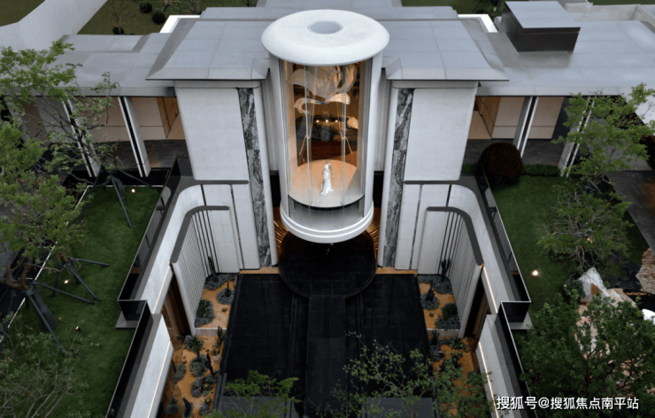 建筑立面采用公建化设计,搭配 “天空之翼”定制化晶钻顶,以灵动线条勾勒出展翅姿态;270°环幕落地窗与超高窗墙比设计,最大化引入天光与景观,创造开阔的城市与园林视野。白灰金经典配色,对称线条+类幕墙设计,从奢石工艺到线条美学,每一处设计都平衡了颜值与实用,与整体风格一气呵成,为建筑塑造出鲜明的辨识度,构建出片区的现代人居标杆形象。