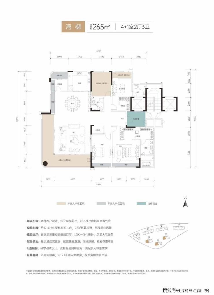 约265㎡低密洋房:两梯两户,中西双厨、LDK社交厅、4开间朝南、270度环幕阳台、约19.1米南向大面宽,双套房主卧。