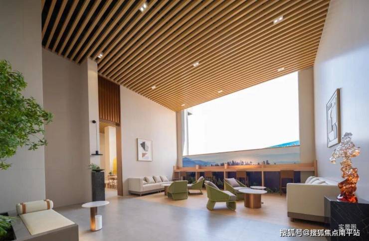 采用大面宽玻璃幕墙搭配金属铝板线条,南地块客厅转角创新采用造价更高的弧形玻璃,以更高成本、更精密工艺,保证立面的美观性,勾勒轻盈、透亮的无界天幕。