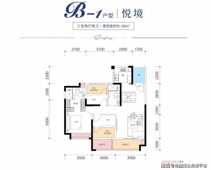 天境星城,项目分6期开发,目前项目在售产品为D区建面约98-140㎡阔景高层及C区建面约111-149㎡低密洋房。D区建面约98㎡三房,完美实现了"麻雀虽小,五脏俱全"布局。