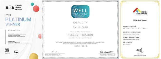 共通过国际WELL健康社区80项标准认证,相继荣膺天津首个WELL健康社区中期认证、BREEAM净零碳建筑认证、伦敦国际设计奖铂金奖等殊荣。