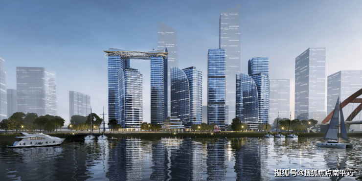 首创8栋帆船建筑造型,以“钻石之帆”的立面闪耀江岸;于约130米高空,以极具国际视野与审美的“天使之眼”云端会客厅,点睛长沙。
