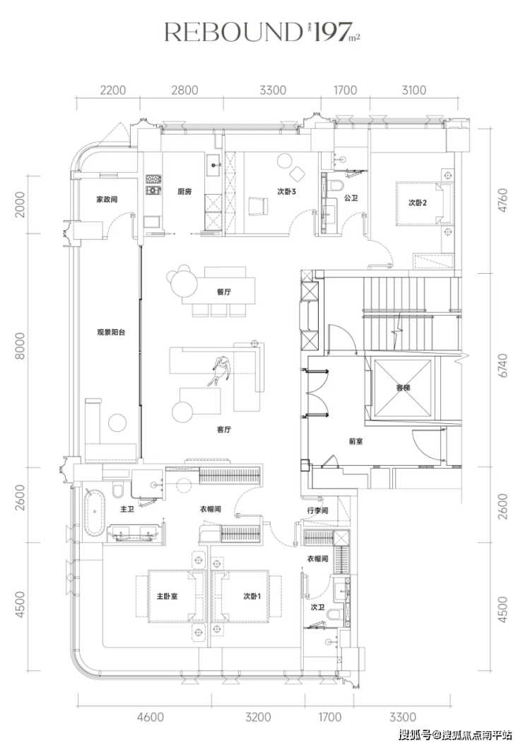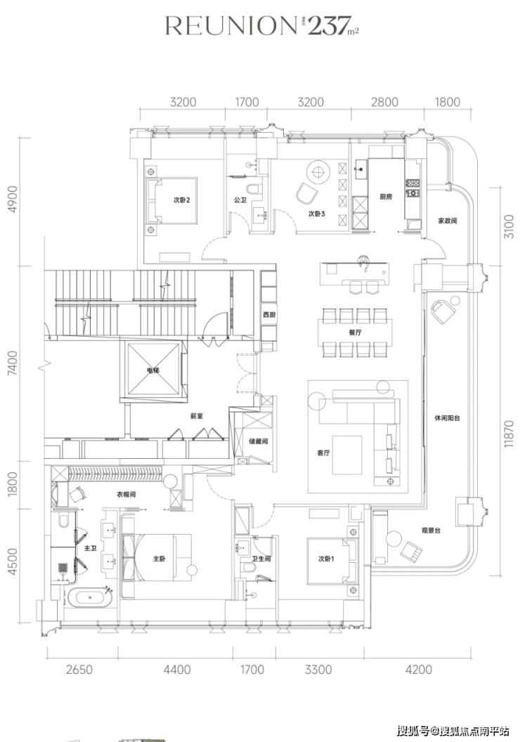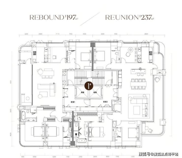 首期推出的1栋产品主打建面约197-235㎡四房大平层,全部为精装交付,纯粹的大平层社区定位明确,没有7090政策限制,确保了客群圈层的纯粹性和社区的高端质感。