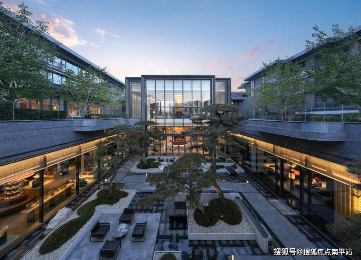 置身一方庭院,感受中国传统建筑理念中的“四水归堂”的空间场景。 超520m²星光水院六景,奢石搭配油松树阵,山水气息扑面而来,给人一种栖停的自在感。