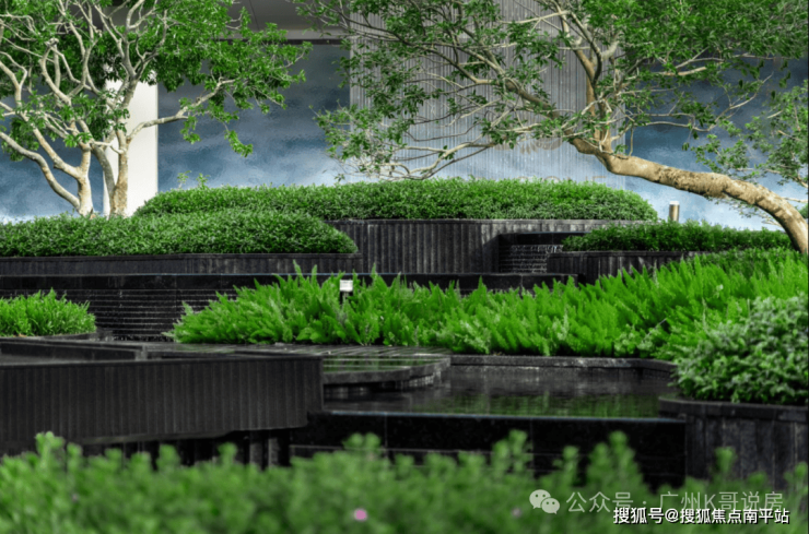 三级叠水立体园林,打破传统平面园林的单调。