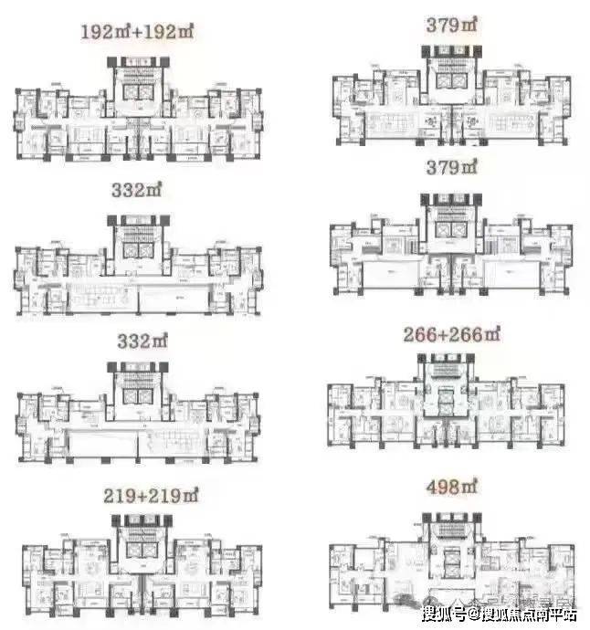 先看看这户型,清一色大平层,直接把“豪横”写在脸上。192㎡、220㎡、266㎡、332㎡、379㎡、498㎡,尺度大到超乎想象!而且,全户型都是第四代住宅,这在新房市场简直是“独一份”,妥妥为终极圈层客群量身打造,普通人只能望房兴叹!