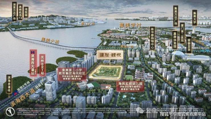项目占据集美桥头堡优势地位 , 一桥快速进岛, 约1KM黄金生活圈 ,BRT凤林站&BRT嘉庚体育馆站在旁,6号线(在建中)/9号线 (规划中) 双地铁配置,同时汇聚银泰广场, 新华都 ,IOI/世茂广场/万达广场等高端商业,近享厦门第二医院、嘉庚体育馆、滨海浪漫线等生活配套,配套含金量十足,是集美桥头板块难得一见的近海+洋房的双组合宝藏楼盘。
