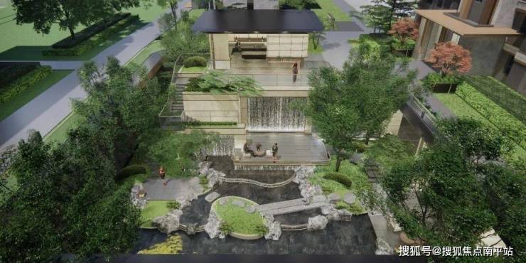 景观设计上,项目遵循“一园三院三巷”的整体格局。北侧约3500㎡市政公园与社区入口无缝衔接,形成“回家即入园”的归属感。架空层内,营造约1500㎡酒店式会所与水院庭境相融合的空间。潺潺水声与庭院景观交织,共同构成兼具社交会客与日常休闲功能的复合生活场域。此外,项目通过将架空层抬升约5.6米,实现人车分流与多元空间延展,确保归家动线与社区生活井然有序。