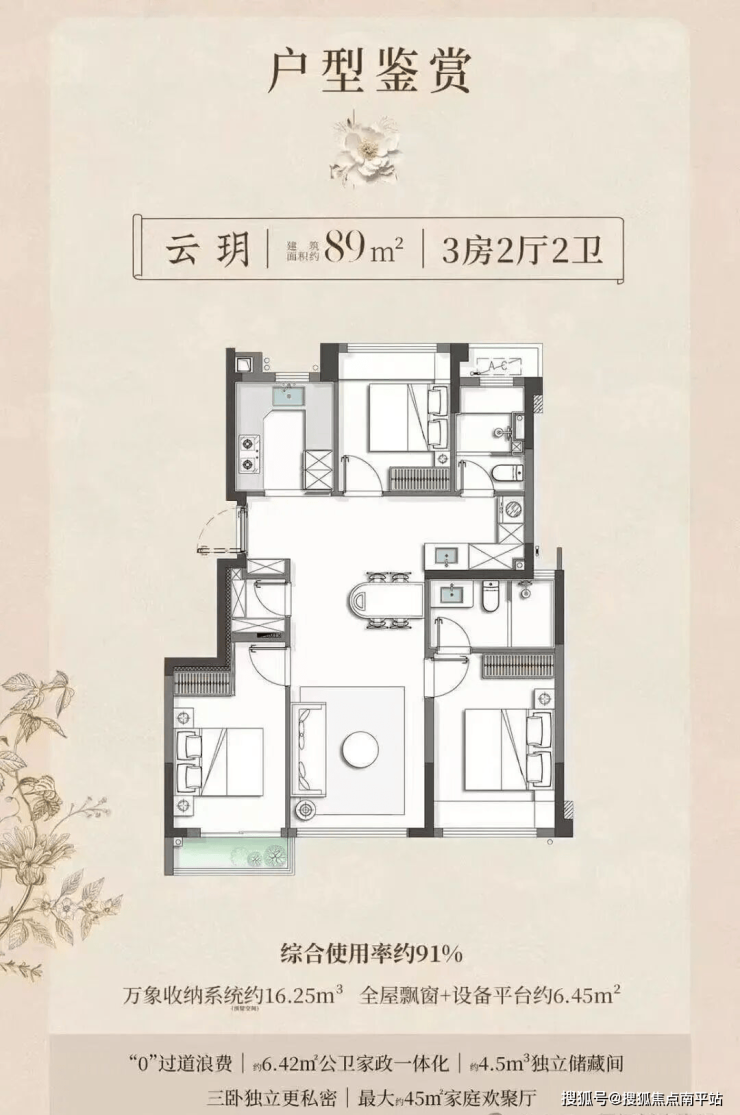 得房率:89㎡:91%