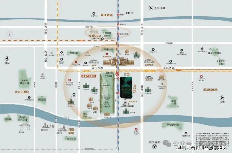 ◎ 尊踞区府正脉,直线距离番禺区政府约200米,坐享广州中轴上仅有的“区府+TOD+中央公园”三引擎合璧的超级中芯。税务局、检察院、财政局、教育局等行政机构环立,凝聚一城高端圈层