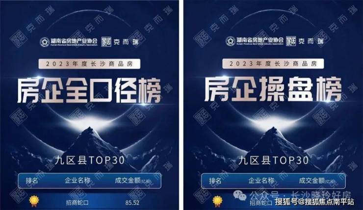 2.长沙代表项目:自2019年入湘,长沙招商蛇口始终围绕城市规划布局,于观沙岭/梅溪湖/滨江等热点板块,匠造了如江山境/天青府/臻境/滨江境等长沙红盘,深度赋能长沙的城市生长,位列【2023年度克而瑞长沙商品房房企全口径榜及房企操盘榜】榜首(来源:克而瑞)