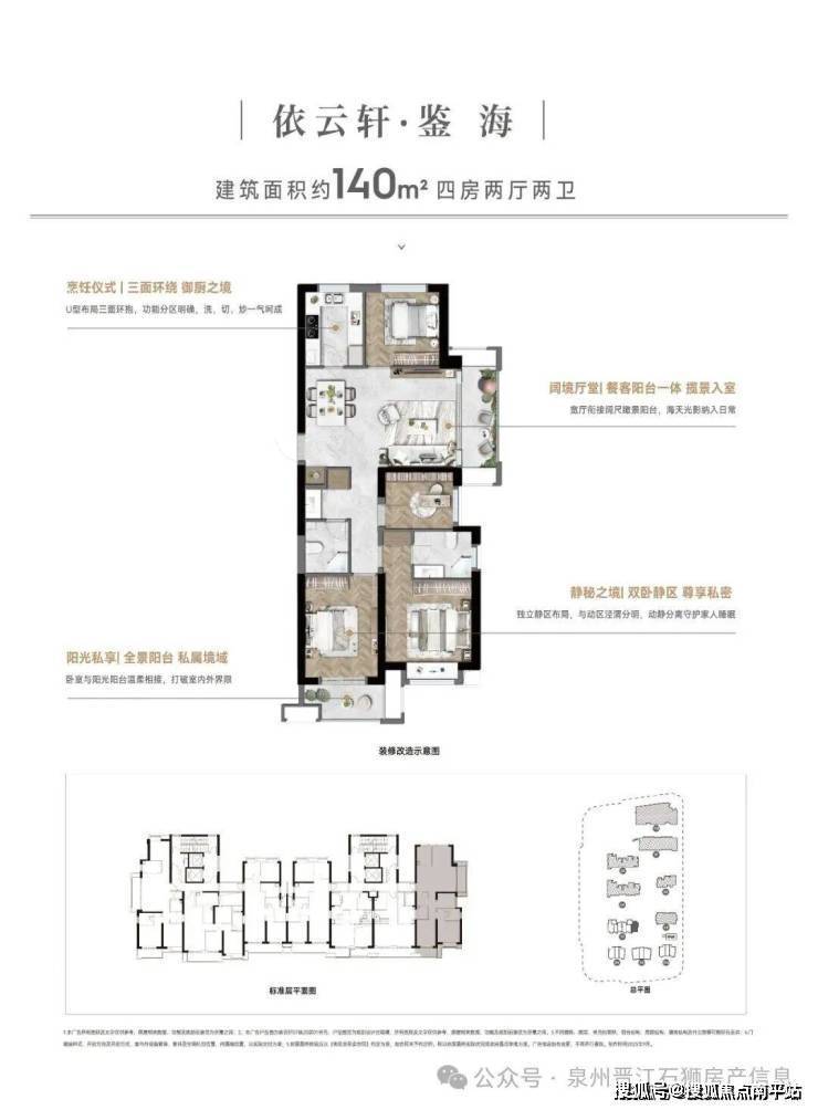 项目立足泉州高阶人居需求,精准规划覆盖不同家庭阶段的产品矩阵:主打 建面约109-141㎡三至四房,满足城市新贵与品质改善所需;更推出 建面约163-260㎡头排海景大平层,一梯两户,以稀缺资源与阔绰尺度,敬献层峯人士。