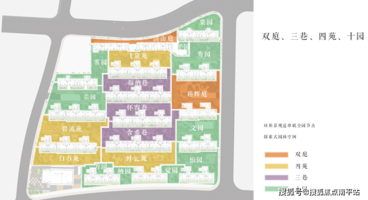 构建“双庭、三巷、四苑、十园”格局,环形景观道如绸带串起景致。
