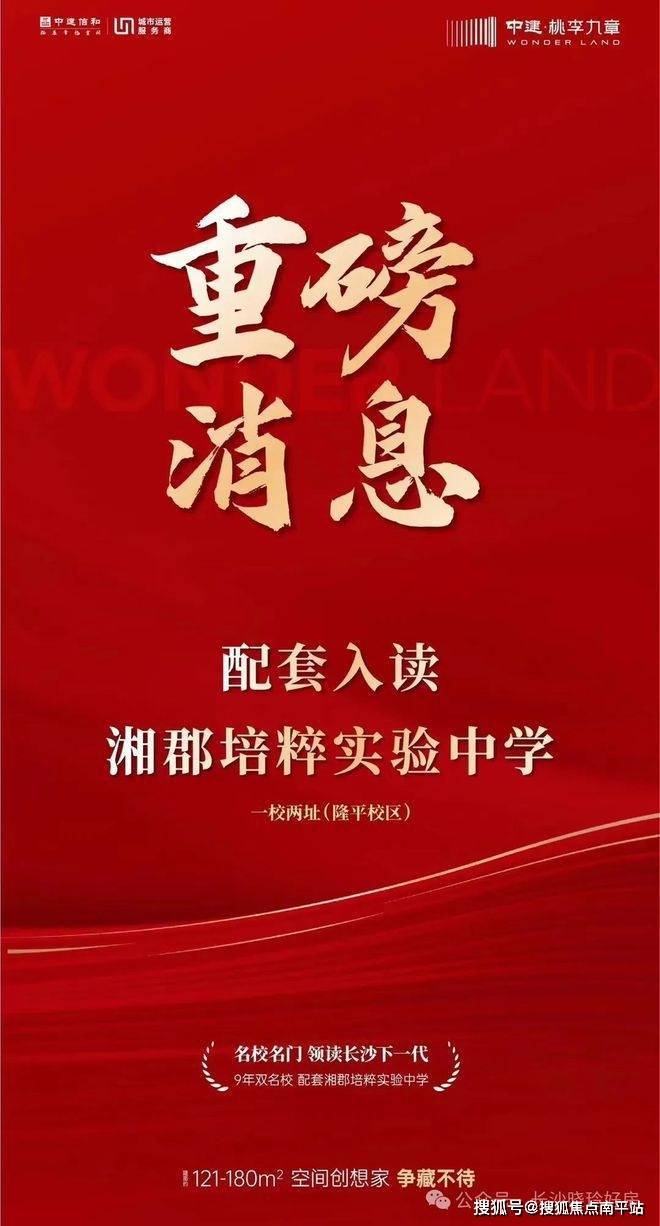 中建桃李九章项目配套入读湘郡培粹实验中学一校两址隆平小区(规划中),是芙蓉区唯一9年双名校配套入读项目