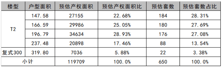 项目规划普通住宅4栋(184套),四代住宅11栋(466套),共15栋高层住宅,合计规划住宅650套。