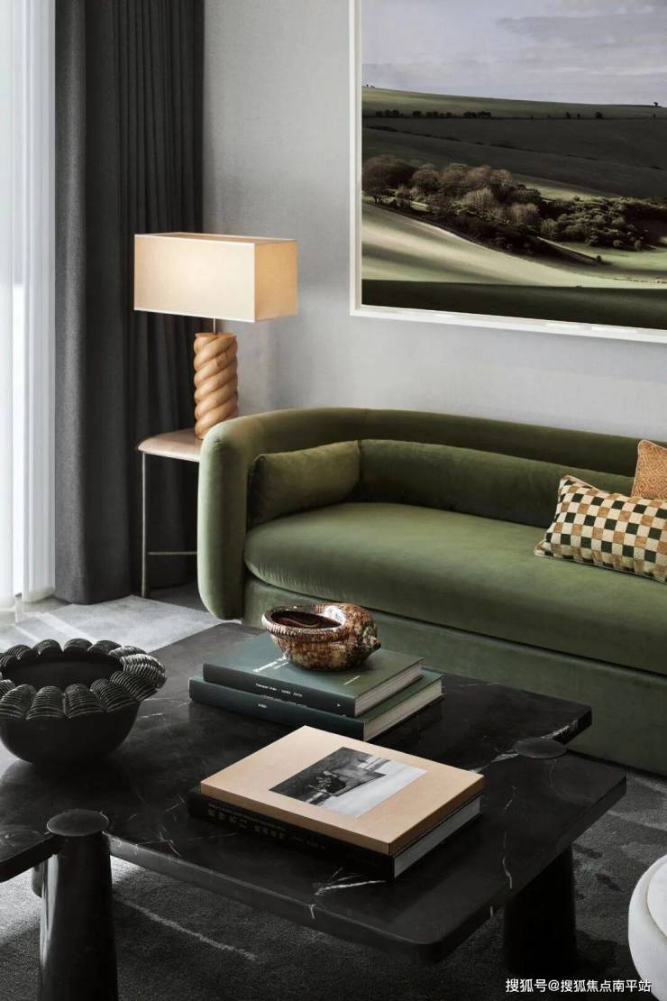 设计师依循大自然赋予万物的本色,客餐厅以绿色调和墨色叙述,感知天然隽永,于山林深处,洞悉风物形态,切身感受盎然生机,如置身森林,呼吸轻盈自由,映现林中风物的质感,原生写意,师法自然。