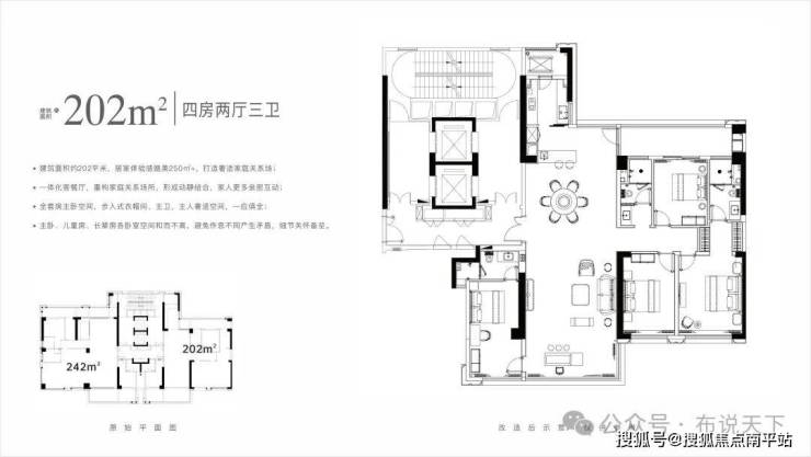 项目清一色大平层, 建面约202-242-368㎡,定位高端、圈层纯粹。