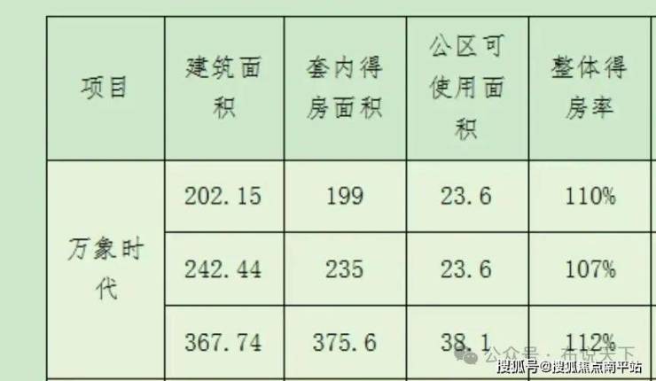 三款户型的得房率,如下图所示: