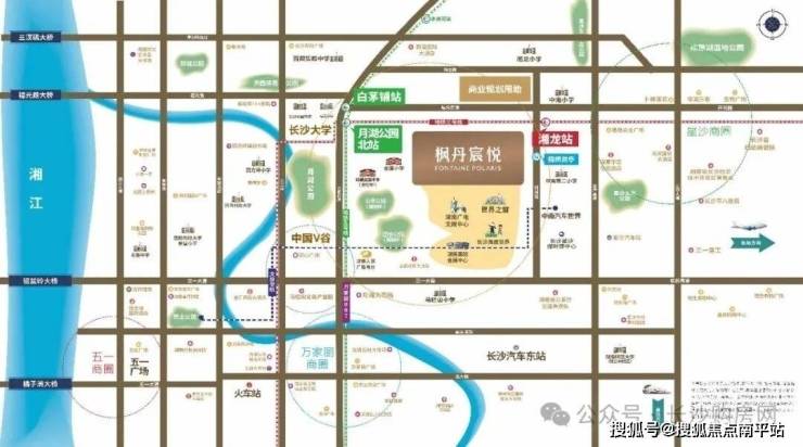 地铁:地铁3号线湘龙站(约300米)与5号线白茅铺站(约1公里)