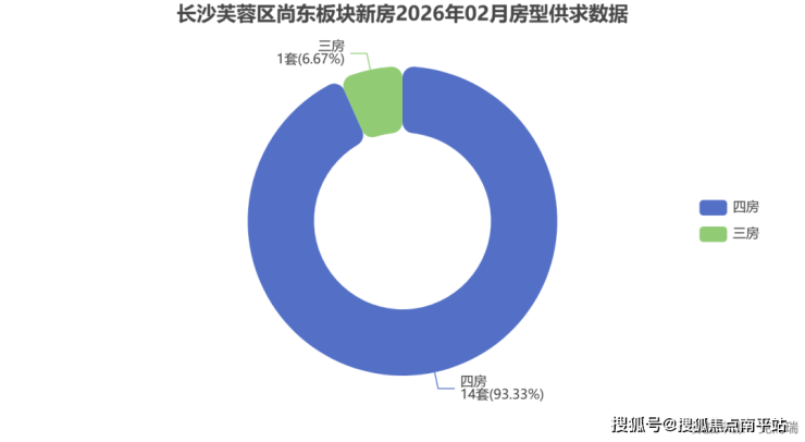 解读:芙蓉区尚东板块2026年2月成交的15套新房中,四房产品占比高达93.3%,充分说明改善型需求已成为板块主流。中交瑞启芙蓉作为纯四房项目,精准匹配市场需求。数据来源于克而瑞。