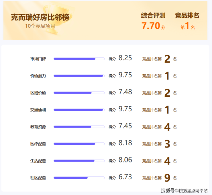 "比邻冠军榜"是克而瑞好房点评网基于克而瑞20年房地产行业的专业力沉淀、深度智联AI工程力,打造的新房项目专业评价体系。它以"相邻对标"为核心逻辑,在定位与地段相近的楼盘之间,围绕地段、产品力、市场表现、口碑等展开综合评价,甄选出每个竞品组中综合测评第一的标杆项目,旨在为购房者提供客观、中立、高效的决策参考。