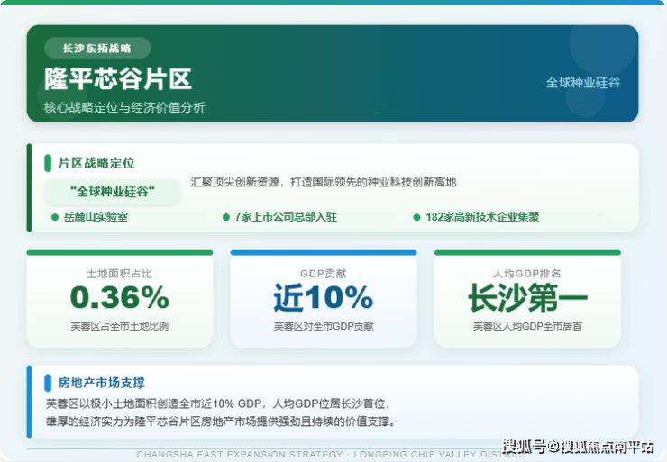 片区内汇聚岳麓山实验室、7家上市公司总部、182家高新技术企业,正打造“全球种业硅谷”。芙蓉区以全市0.36%的土地贡献近10%的GDP,人均GDP21.45万元稳居长沙首位。这样的产业与经济支撑,为区域房价提供了坚实底盘。