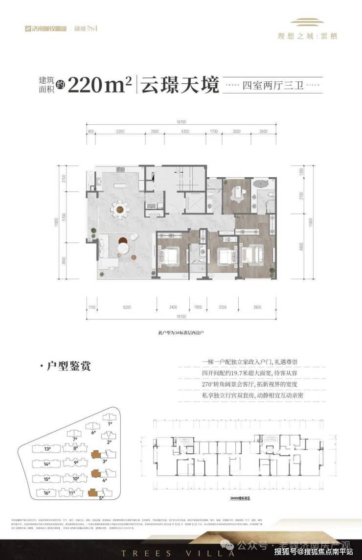 公摊:洋房16-18%,叠墅230私梯入户的14%,180和225公梯的22%