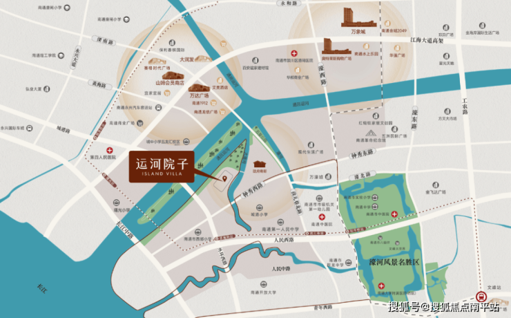 运河院子项目位于五龙汇任港湾外环西路东、钟秀西路北侧,被通吕、通扬运河、大港河三大水系环绕,天然形成了一个独立的岛屿状土地,既在繁华之中,又能安享静谧。