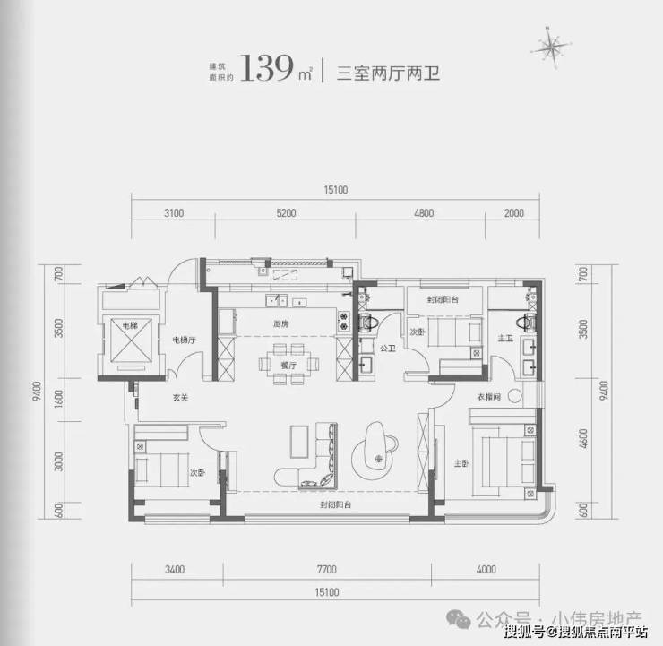 🔥C户型|139㎡三室两厅两卫(可改四室):