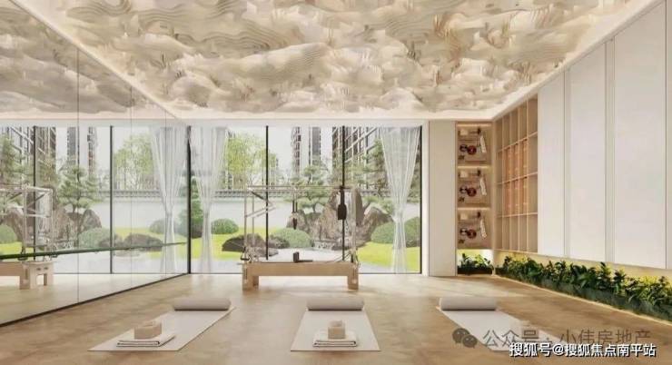社区打造了一条近288米的“超级中轴”,串联起约70米宽的华盖式大门、约1200㎡高端会所与中央景观带。会所涵盖健身房、恒温泳池、茶室、亲子空间等11种场景,每户均享约3.75㎡公共服务空间,在低密社区中堪称奢侈。