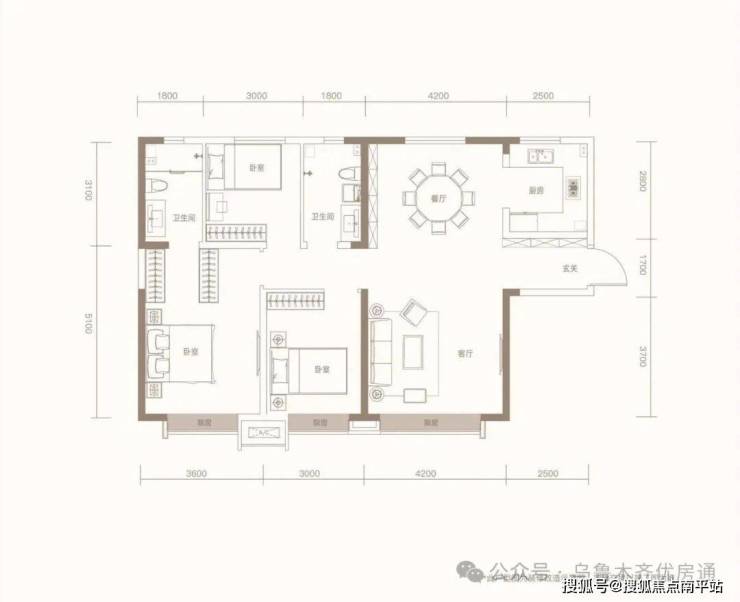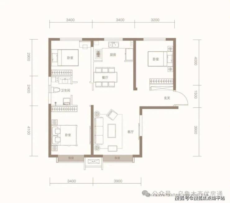 户型设计:全明通透,高赠送