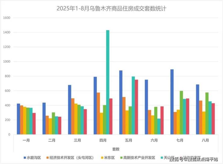 从1-8月的成交数据来看,天山区的市场表现可圈可点。该区域在4月份达到了一个显著的成交高峰,这一单月成交套数几乎是第二名水磨沟区的1.8倍,展现出惊人的市场爆发力。