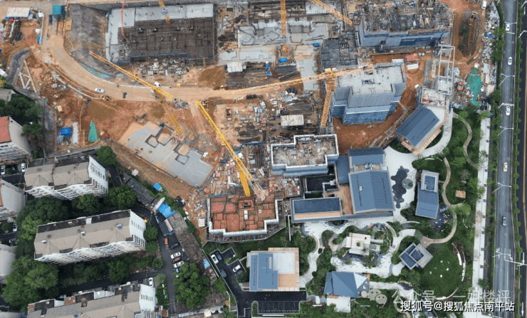 从航拍实景来看,除了门口的公园之外,首开楼栋已经建起来好几层了。