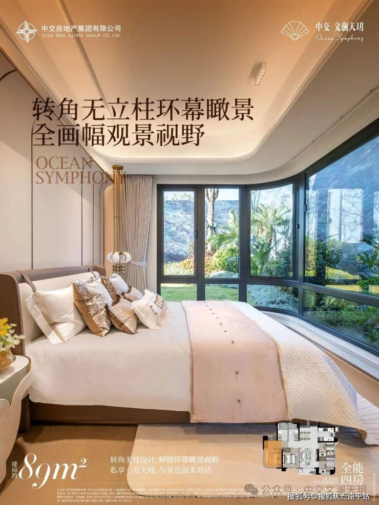 转角无立柱环幕瞰景主卧,满是生活的温柔与诗意
