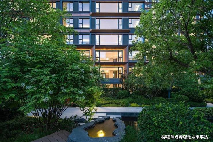 下沉庭院—建筑与景观融合设计,项目从社区入口大堂到归家单元门户,在建筑、景观、室内一体结合设计下,建立了高度融合的立体归家系统,让归家成为一次如度假般的缦系之旅。