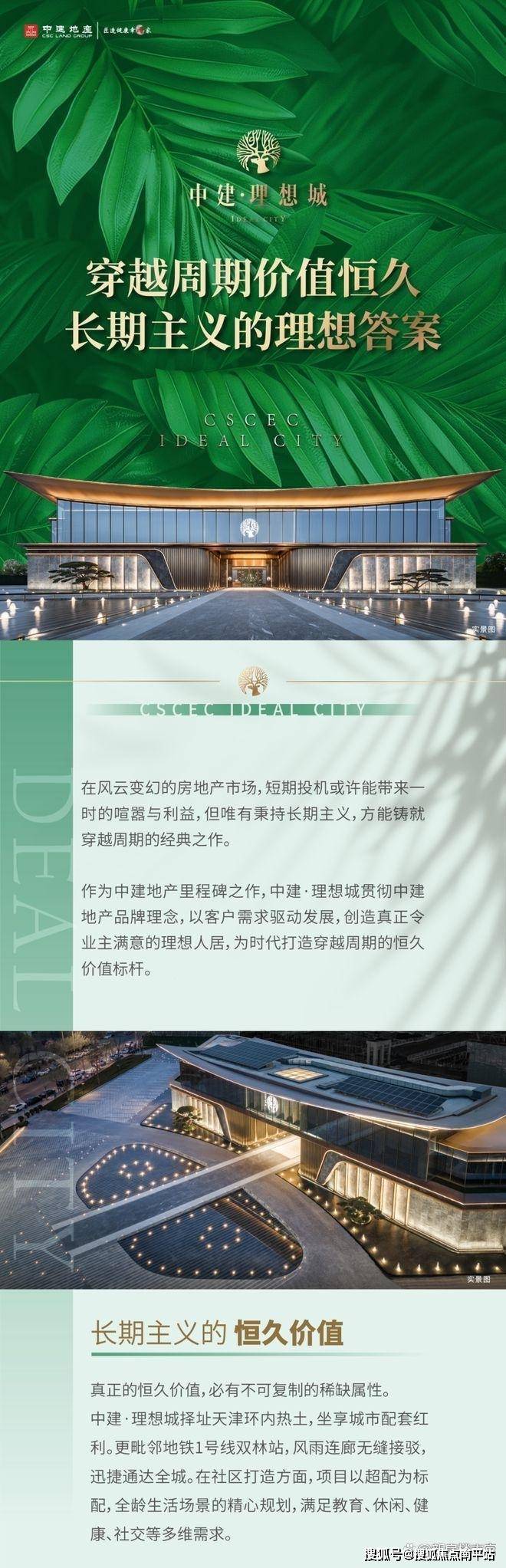 中建・理想城选址天津市津南区与河西区交界处,占位天津外环内优质地段, 与地铁1号线双林站零距离接驳,交通便利、周边学府环绕,商圈林立,医疗资源优渥,拥有得天独厚的地理位置。项目总占地面积12.4万平方米,总建筑面积35.5万平方米。作为曾经的天津地铁总站原址,双林板块曾见证了城市的变迁与发展。如今,作为津南区链接主城区的宜居生活板块,这里是区域发展的生活先行区以及门户形象展示区,ARCHILAND筑土国际以多维绿化的空中花园、街区友好的城市界面、未来导向的场景设计、精致创新的户型设计和可持续的低碳社区,在此城市重要节点之上,匠心打造一座焕新区域活力、引领未来生活方式的人居典范。售楼处电话☎️400-159-8559转接5555【已认证】来电尊享优惠活动