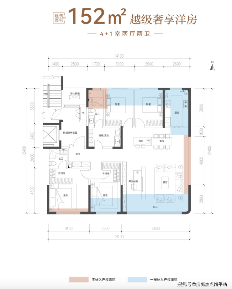 3)新规超高得房率 北区 152平米 4+1室两厅两卫
