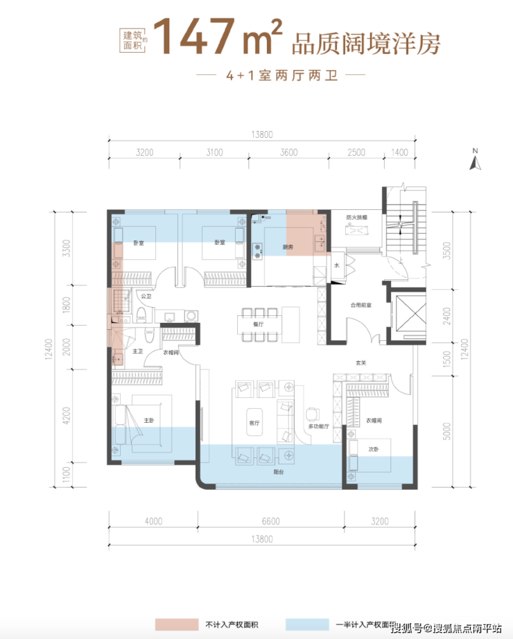 2)新规超高得房率 北区147㎡ 4+1室两厅两卫