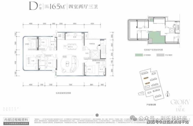 ⑤:建面约165㎡四房两厅三卫约3.15米层高,环绕屏环幕大平层约21.6米巨幕南向面宽比肩传统230㎡大平层实享空间两梯两户纯板式16F小高层,约3.15米层高,朗阔视野尺度
