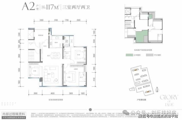 ①:建面约117㎡三房两厅两卫T2板式类独立入户,“负”公摊产品比肩老规约140㎡户型实享空间约10㎡全明电梯前室,尊崇归家体验