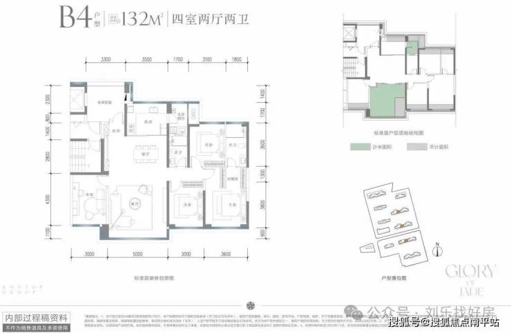 ③:建面约132㎡四房两厅两卫T2板式类独立入户,三卧室朝南比肩老规约160㎡户型实享空间 约10㎡全明电梯前室,尊崇归家体验