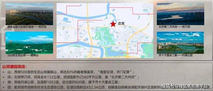 北靠捞刀河风光带、南临长沙大学及1003亩的月湖公园、西倚500亩生态山体麓峰山,依山傍水,独享生态谧境,城市级私享山河湖园景观,繁华都市里的静谧”桃花源“。