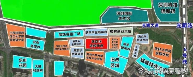 金硕臻府,由满京华集团开发,位于光明区光明中心区光辉大道与狮山三街交汇处,项目所在区域是光明规划最宜居,居住小区板块最大的片区,北侧靠近科学公园,东侧及南侧是深圳小学光明学校狮山校区及初中校区,距离最近的6号地铁线“光明站”约800米。