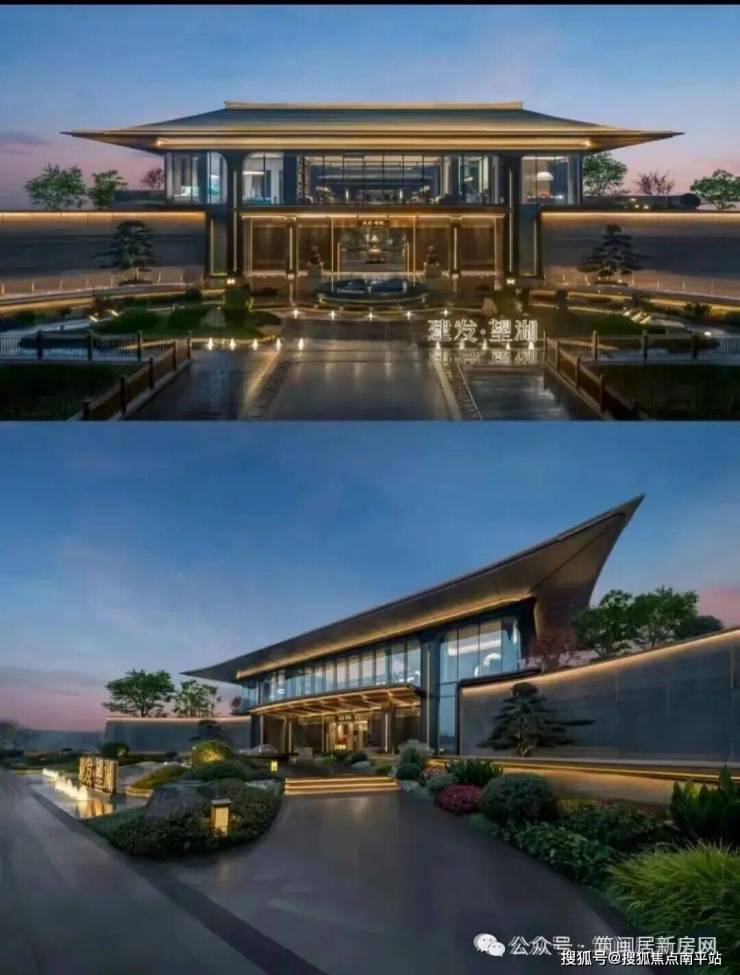 园林设计采用建发招牌的「新中式」风格,打造「一轴三园,五进九景」的园林体系。约1.5万㎡园区内融入亭台水榭、月洞门等传统元素,与外部湖景形成「内园外湖」的双重景观体验。