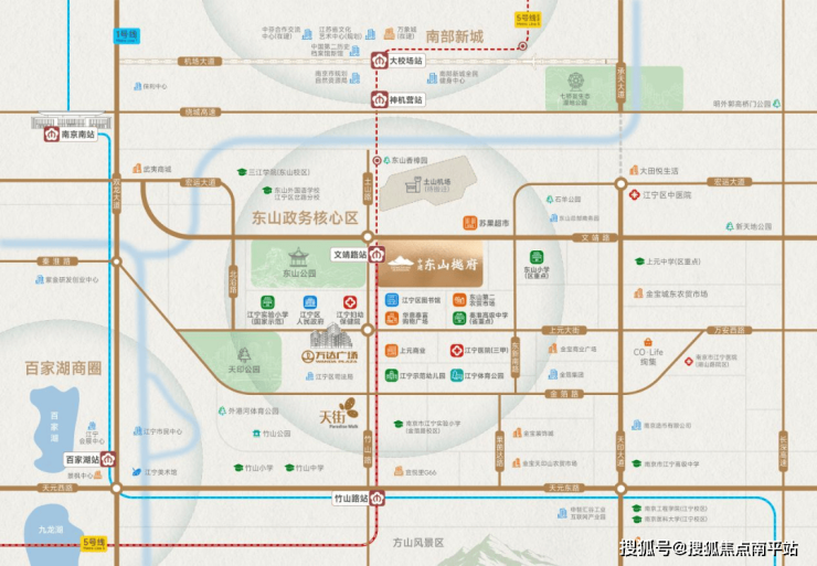 2)5号线所在的百年竹山路,不仅是江宁中心轴,也是纵横南北的干道。伴随着土山机场搬迁、南部新城的打通, 项目所在位置,就是江宁拥抱主城的门户所在,是城市烫金“十字路口”,价值再次高企!