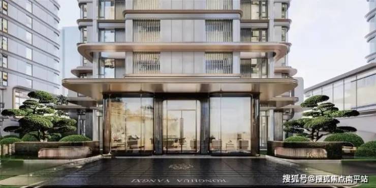 项目外立面采用大面积中空LOW-E玻璃幕墙,辅以金属铝板勾勒,环幕弧面公建化立面,打造屹立中心的封面。