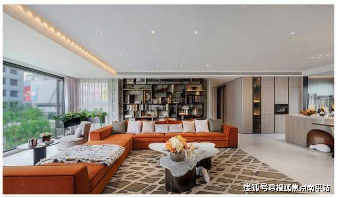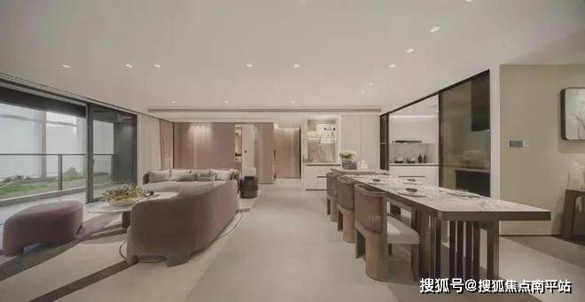 建面约225㎡户型,四开间朝南,约10m宽境阳台将生活与阳光、风景相连接,敬献都心奢感生活场景。