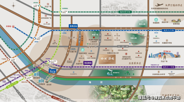 格调澄园项⽬所处的位置正是东丽区的核⼼政务中⼼。 项⽬周边1公⾥范围 之内云集了东丽区委区政府、东丽区国税局、东丽住建委等多达⼗余个政府党政机关及企事业单位。与第一种城市价值叙事的逻辑完美契合。