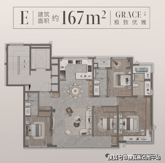 5、面积都做成167了,做成3卫真的有必要吗?而且还有一个暗卫。小编觉得190左右做三卫还好,167做成两卫,让出一部分空间加大卧室面积或者收纳空间理论上更舒适。